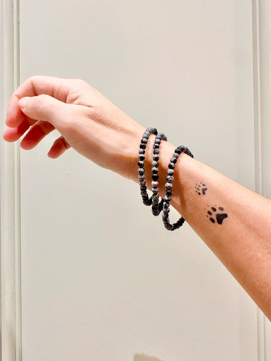 Precio habitual A partir de €12,00 EURPrecio habitualPrecio unitario / porPrecio de oferta A partir de €12,00 EURPulsera de bolas de Obsidiana nevada