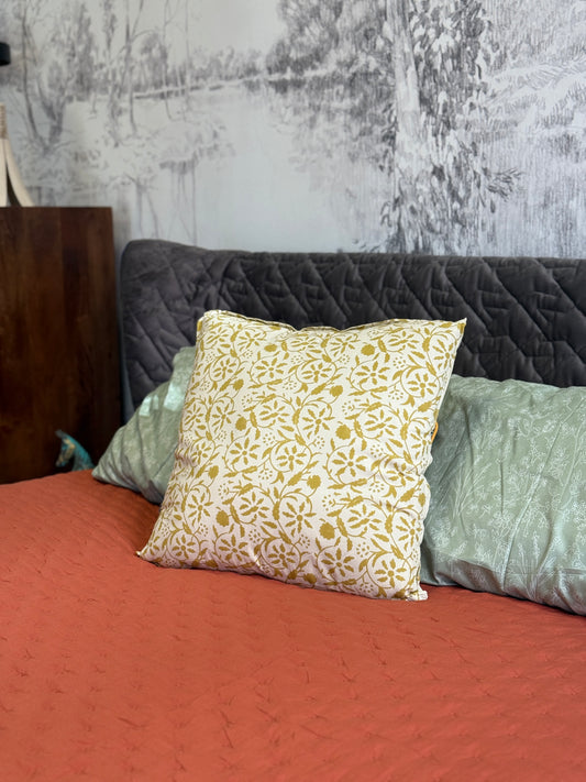 Cojín cuadrado estampado beige-mostaza