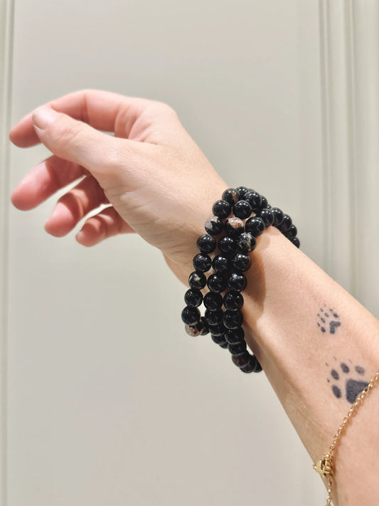 Pulsera de bolas de Turmalina negra con cuarzo