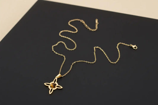 Colgante dorado nudo de bruja con ojo de tigre