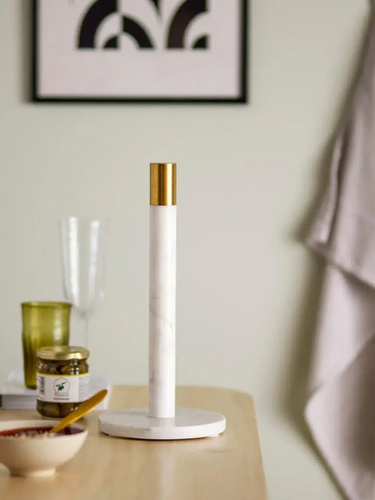 Mortero de mármol blanco Ernfred con mango de mármol y madera