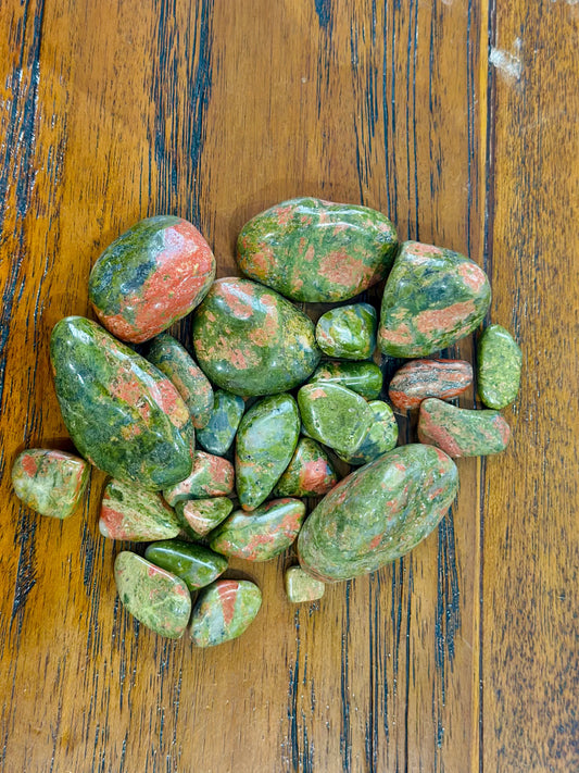 La Unakita es un mineral ideal para liberar tus bloqueos y miedos, ayudándote a poner las situaciones en perspectiva.