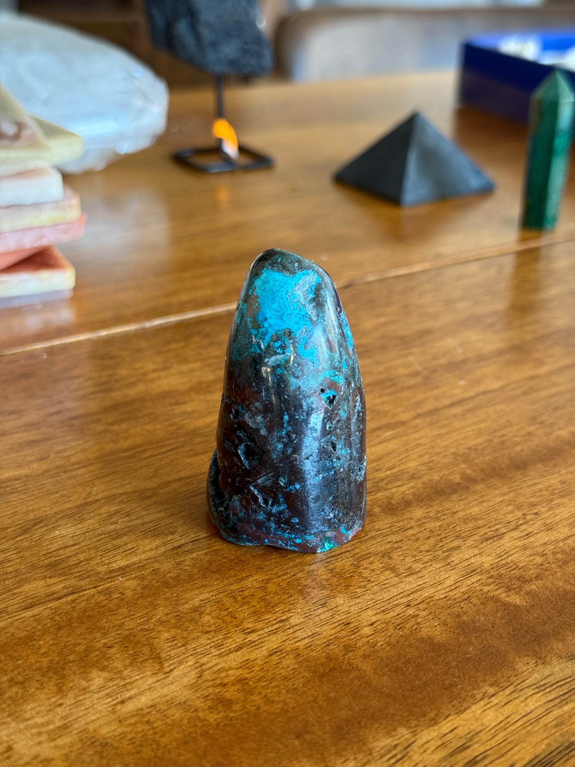 La CRISOCOLA, en litoterapia, es un mineral que nos ayuda a fomentar un estado de paz, tranquilidad y apaciguamiento. Ademas es perfecta para las relaciones de pareja y familiares e incluso las complejas relaciones de trabajo pues fomenta el perdón, la compasión y la amabilidad, fortaleciendo los lazos emocionales.
