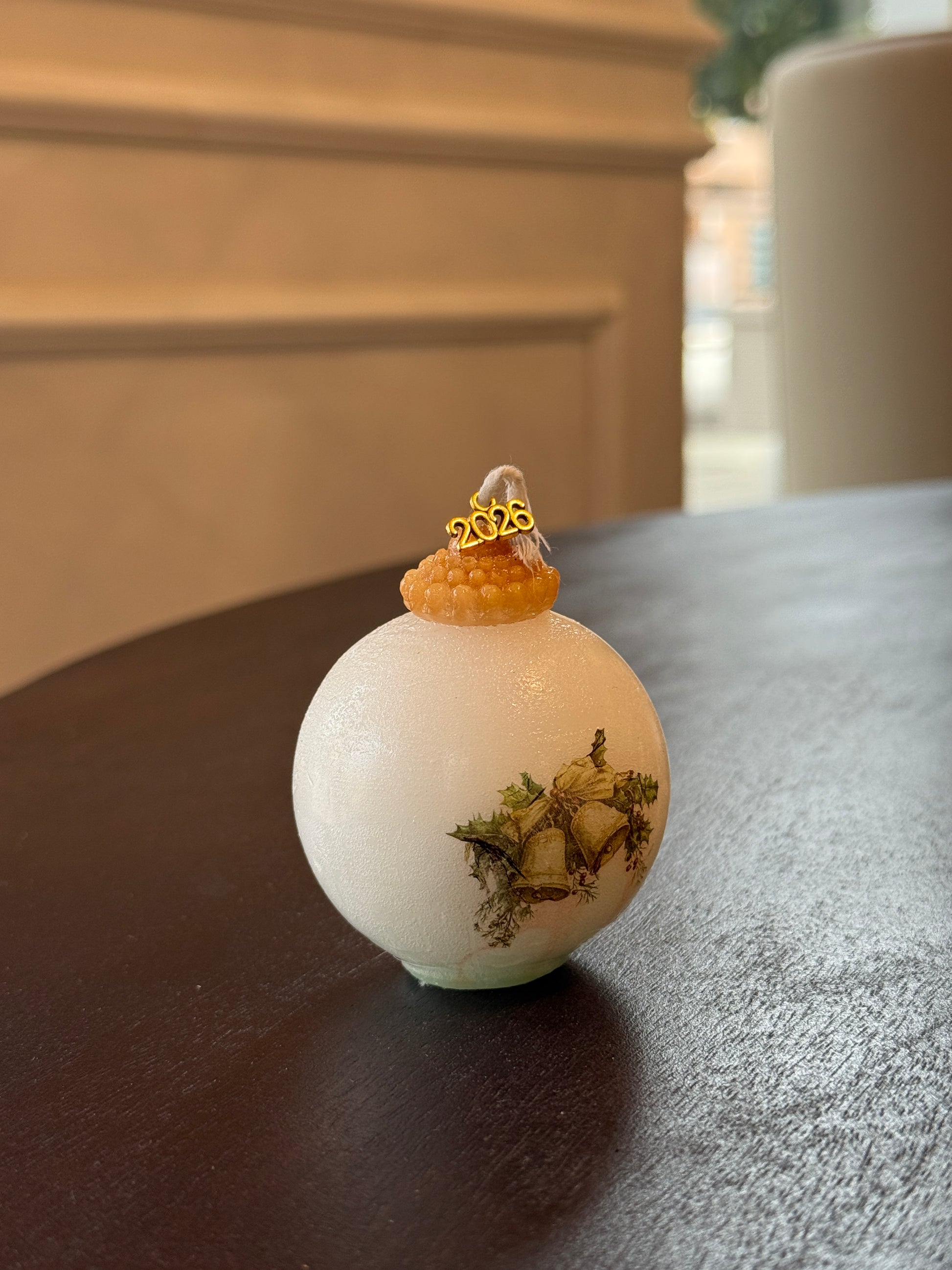 Vela de cera bola de Navidad de porcelana, ed. Navidad 2026.